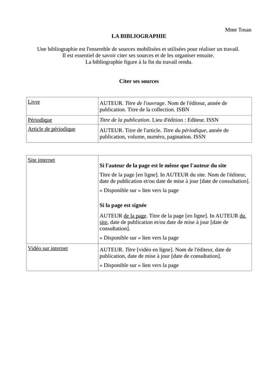Vous utiliserez le document "Comment citer ses sources ? " pour les présenter.